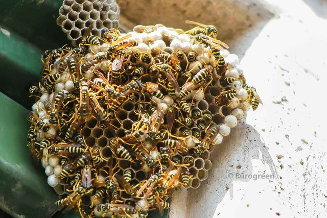 Vespe: eliminazione dei nidi che possono essere più o meno complessi e sempre costituiti di un materiale simile al cartone che viene creato impastando del legno con la saliva (da qui il soprannome di vespe cartonaie). Sono posti a seconda della specie su rami, rocce, nelle cavità dei tronchi oppure sottoterra o ancora in manufatti antropici come camini, sottotetti, l'interno delle travi di metallo, verande, serre, vetture abbandonate ecc. e sono divisi in cellette esagonali con apertura inferiore o laterale. Il numero di componenti di una società può andare da alcune decine a più di 100.000 individui come nel caso di certe specie tropicali.